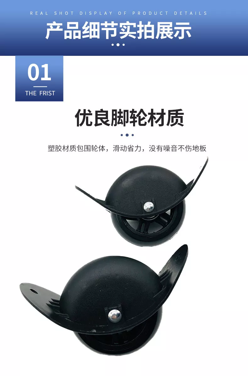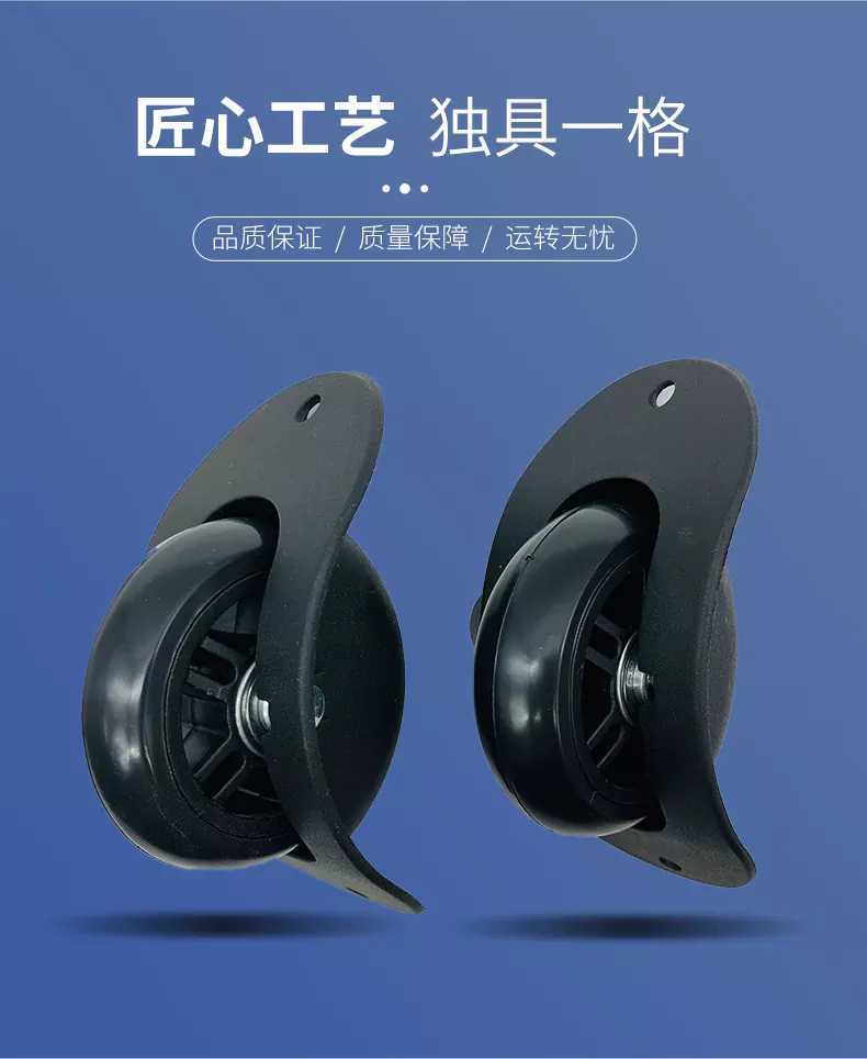 Trolley Case Wheel ทำจากวัสดุใหม่ PU คุณภาพสูง ซึ่งกันน้ำ กันความชื้น สารหน่วงไฟ และทนความร้อน วัสดุมีน้ำหนักเบาและทนทานต่อการสึกหรอเป็นพิเศษ ตลับลูกปืน, ตลับลูกปืนคู่ในตัว, ทำจากเหล็กกล้าคาร์บอนคุณภาพสูง, ล้อเรียบและไม่มีสิ่งกีดขวาง, ทำให้ทนทานยิ่งขึ้น; ขายส่งล้อกรณีรถเข็น, ตัวยึด, ตัวยึดหนา, อิเล็กโตรโฟรีซิสพื้นผิวหนา, ทนแรงกดได้มากขึ้นและแข็งแรงขึ้น Trolley Case Wheel Braking ดีไซน์เบรกคู่ขณะเบรกล้อ เบรกรอบทิศทาง เพื่อความปลอดภัยยิ่งขึ้น